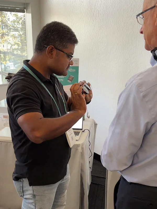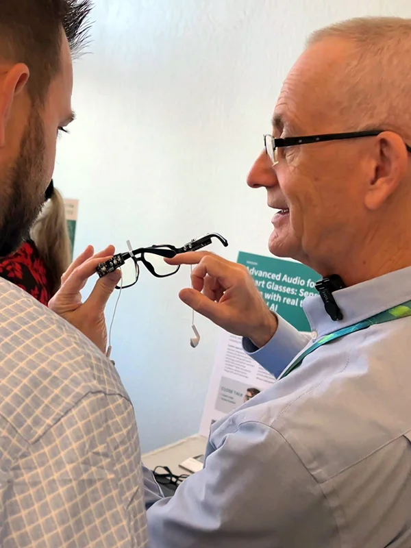 |  			 Smart glasses are no longer just a futuristic concept — they’re becoming a reality, and Alango Technologies is helping lead the way. At Infineon OktoberTech Silicon Valley 2025, our founder and CEO Dr. Alexander Goldin unveiled Alango’s latest smart audio glasses reference design, built to redefine voice interaction in wearable tech. Featuring eight Infineon low-noise MEMS microphones and an IVS bone-conducted voice sensor, our glasses deliver intelligent audio performance across three dynamic modes: hearing enhancement to improve face-to-face communication in noisy settings, crystal-clear voice pickup for calls and voice control, and far-field voice capture for live translation and transcription. Despite the high ambient noise on the show floor, all modes performed flawlessly. Our team presented non-stop for eight hours and received enthusiastic interest and follow-ups from attendees. If you are developing smart glasses with advanced voice and audio capabilities, contact Alango Technologies to explore what’s (im)possible — including how we can help you achieve remarkable loudspeaker sound quality in compact wearable designs. You can find video highlights from the Internal Infineon Demo-Day and Infineon OktoberTech 2025 on our YouTube channel.  |