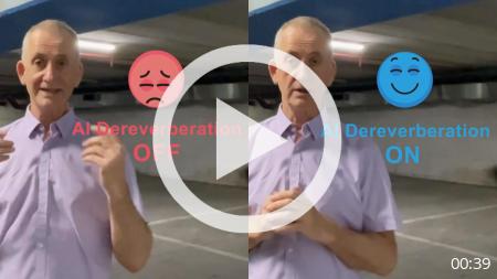 Having a conversation in reverberant conditions may be extremely difficult for people with hearing loss. Artificial neural networks can help by making sound better. This video is just one example of what can be done...